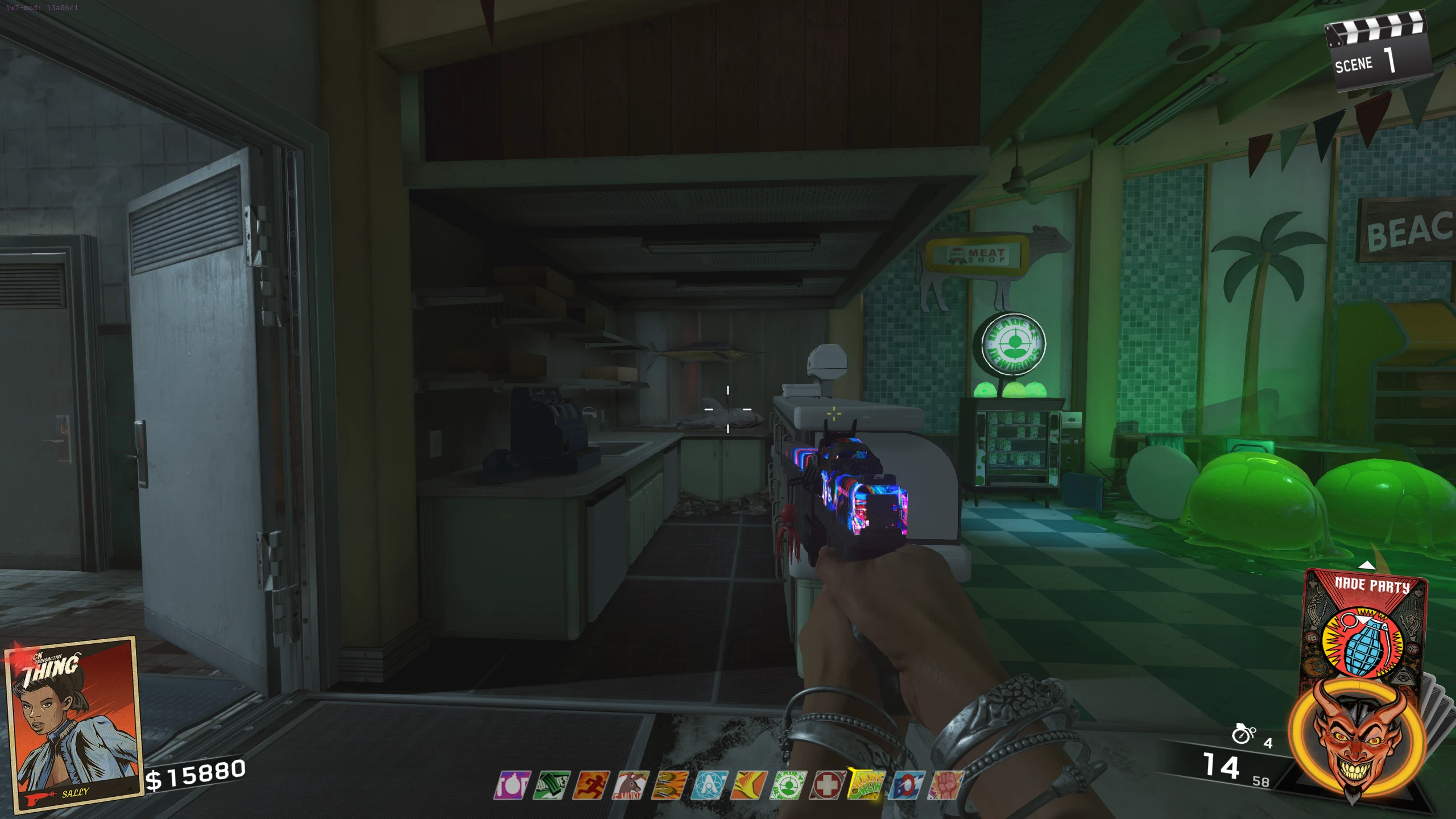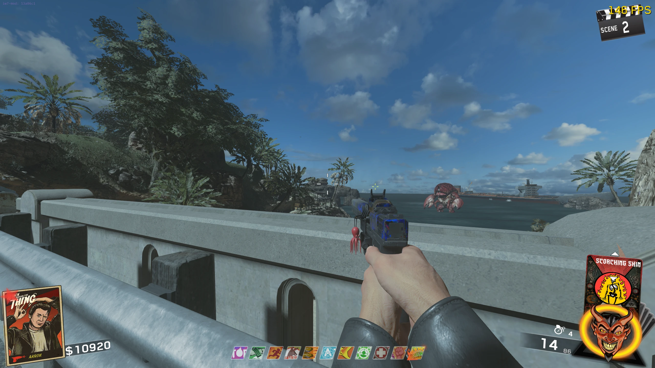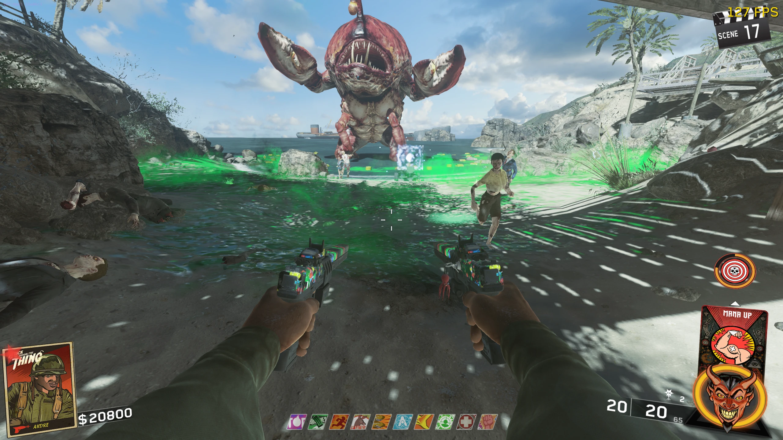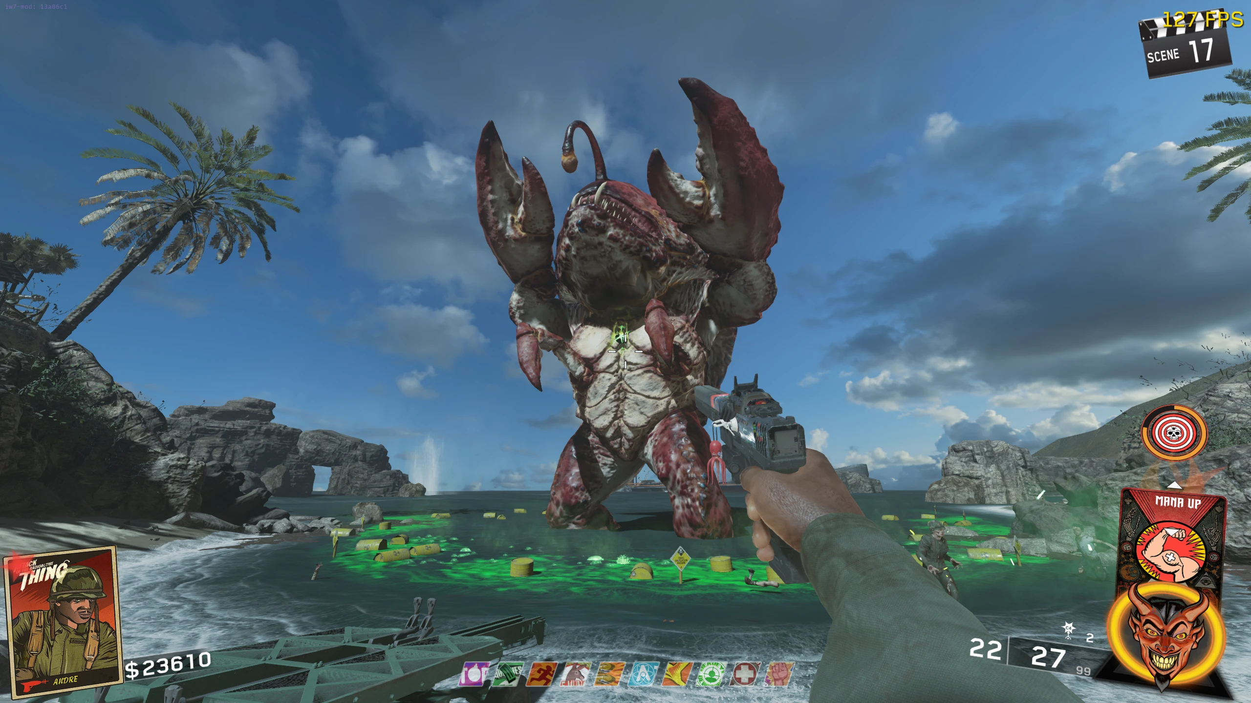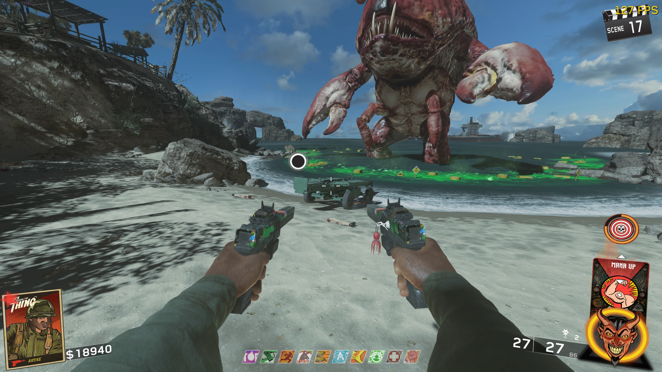 - You will be teleported to the Beach, where you have to push the Nuke Cart (by standing near it) to the water. While you're pushing the Nuke, Crog-Zilla will launch Crog eggs and Fireballs at you. It'll do this whenever the nuke stops then starts moving again. Zombies will also start spawning.