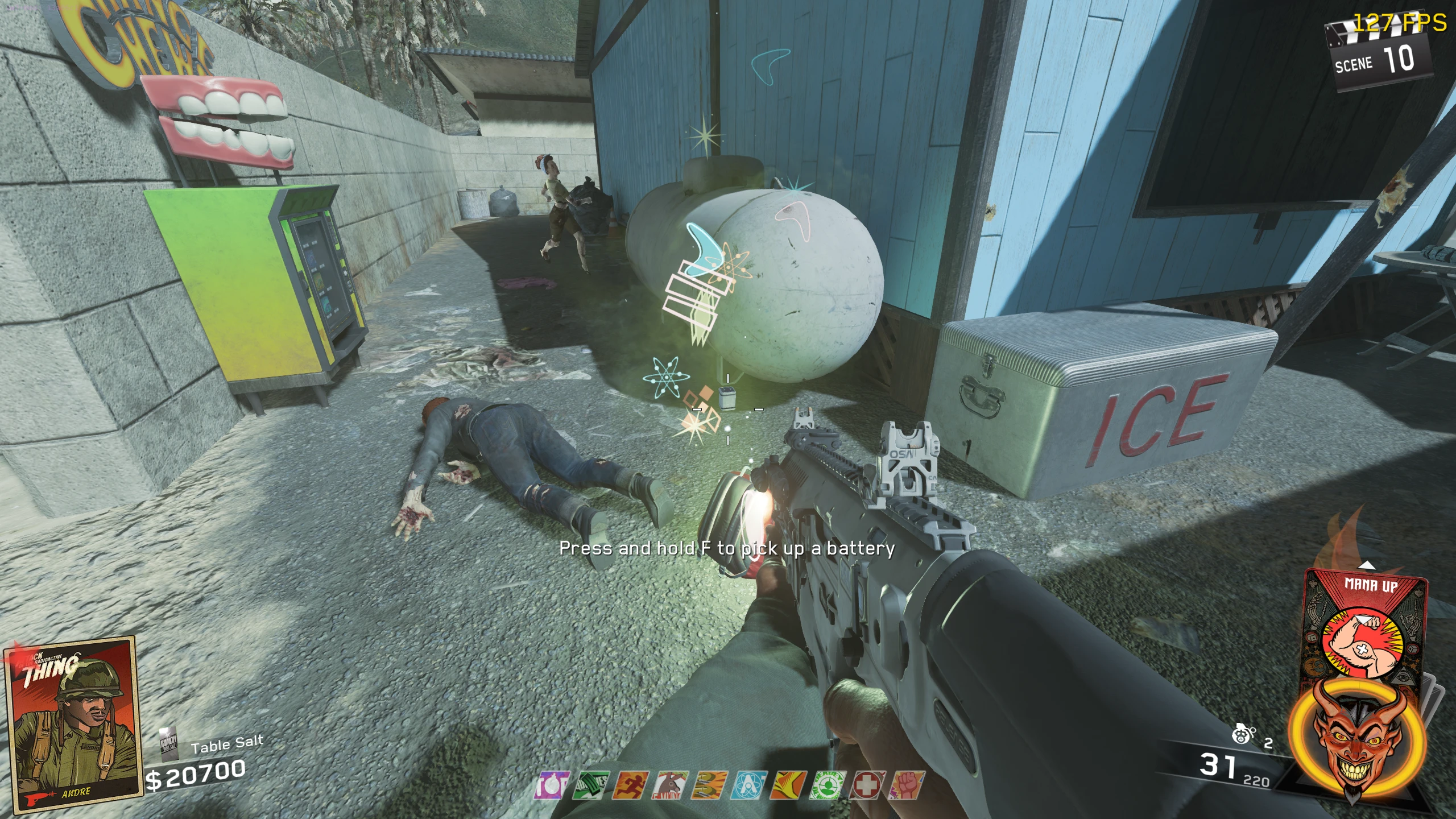 - Pick up the arm inside the Firepit right of the Volk wallbuy in the RV Park.