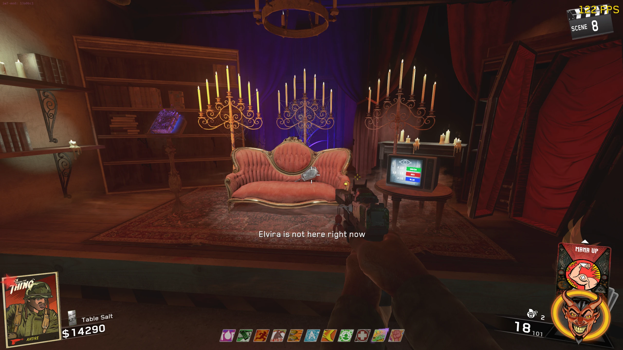 - Elvira's Mirror - You need to summon Elvira (by giving her a filled Vial) and then wait for her to "despawn". Once she's despawned, go to the TV Station and interact with the mirror on the couch; you can pick it up when it says, "Elvira is not here right now".