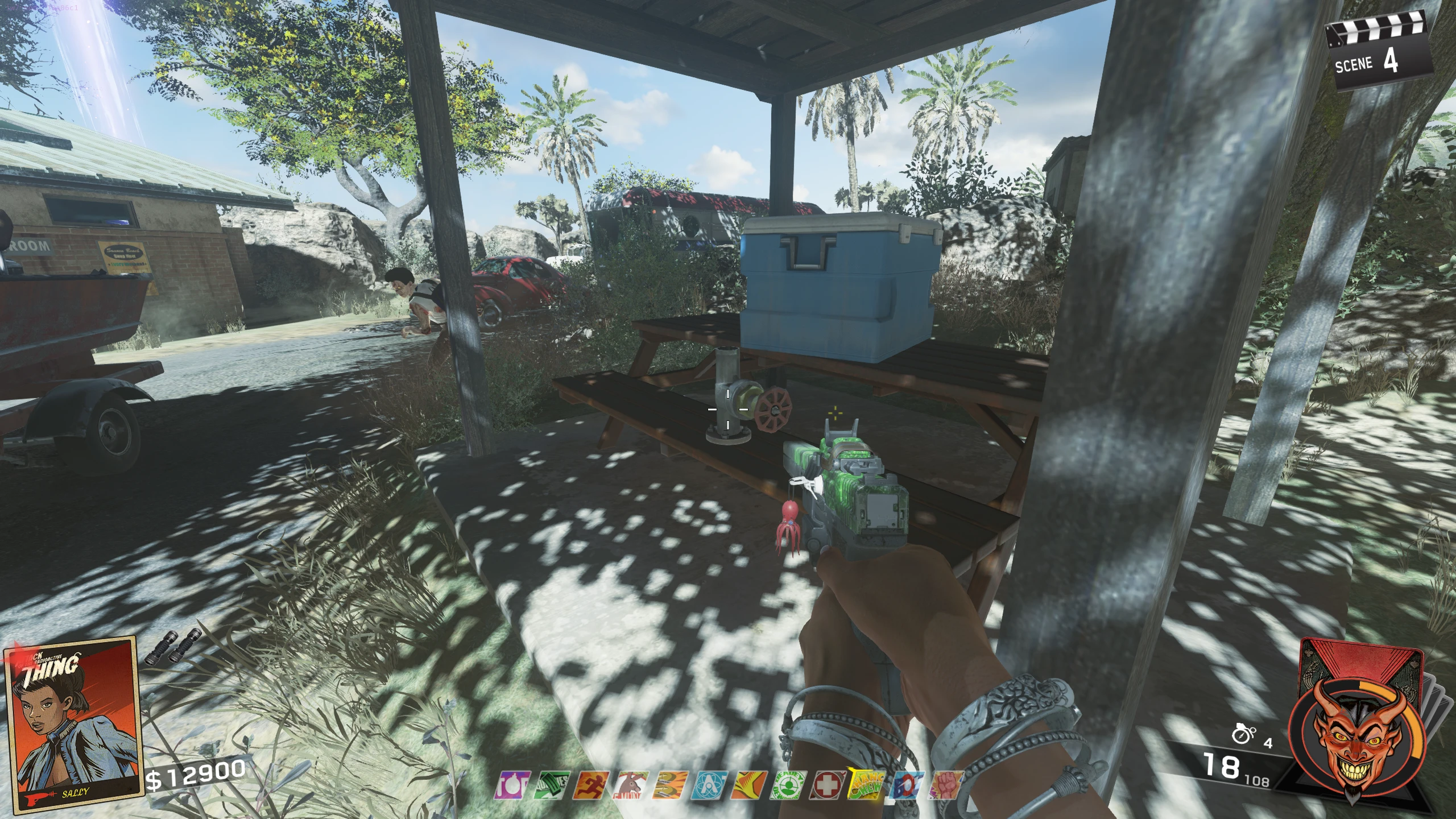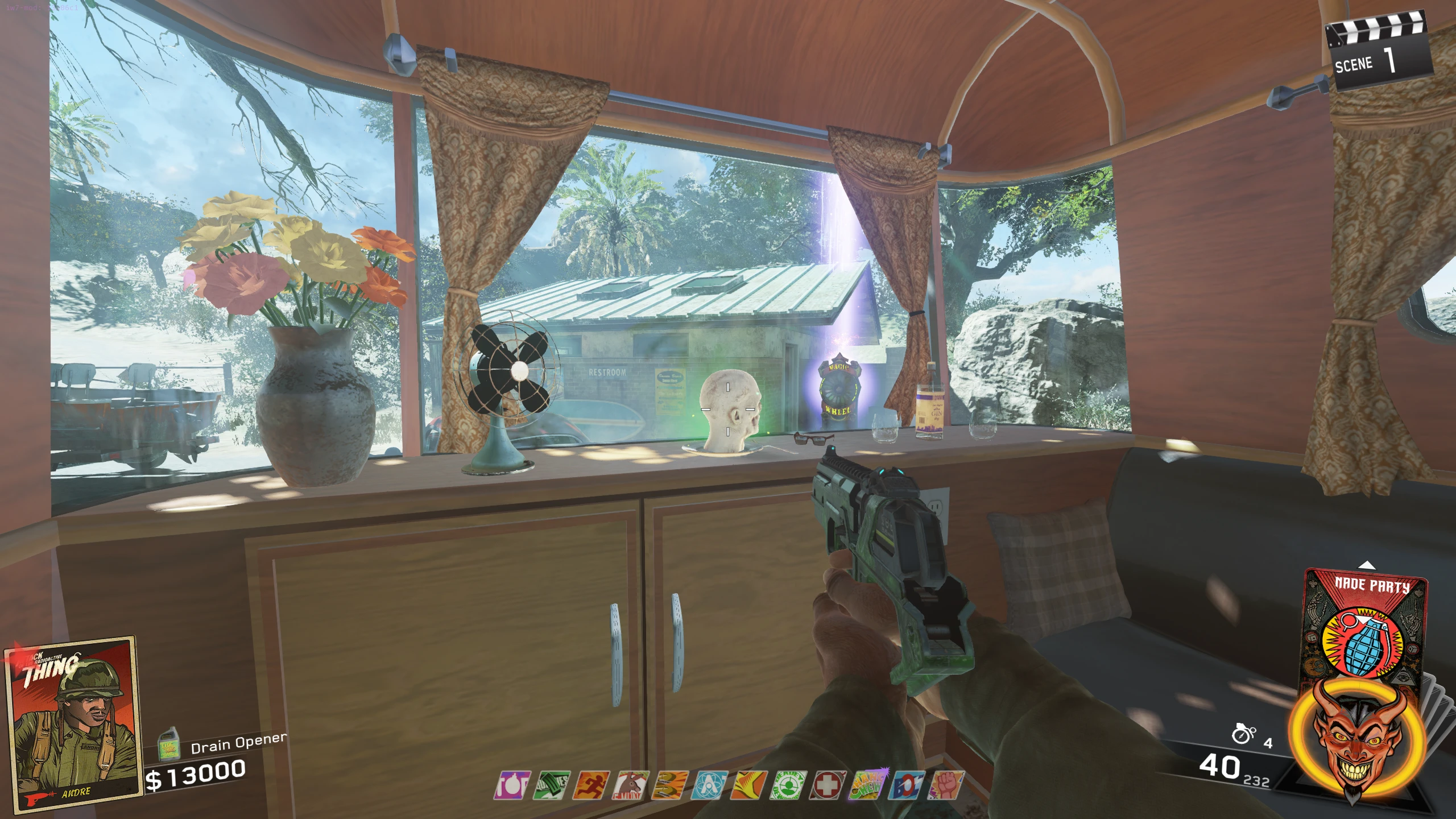 - After unlocking Pack-a-Punch, enter the Projector room and press the button on the wall. Now, instead of teleporting back to the map when you leave the Projector room, you will be teleported to a locked RV in the RV park.