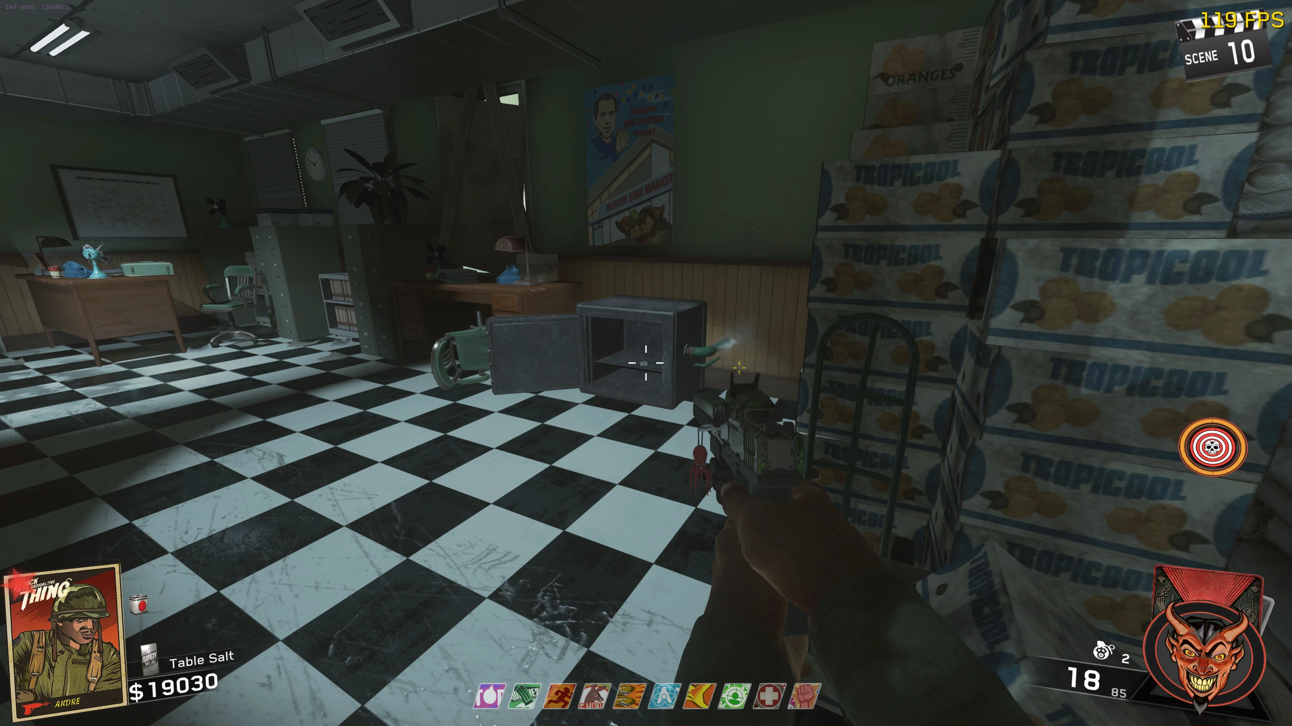 - While attacking, a part of Crog-Zilla's chest will glow. Using the death rays around the Beach, you will need to shoot the chest. After one successful hit (indicated by a skull icon), the chest will stay glowing, and you can attack it whenever. Once the chest is hit once, you can also shoot the chest with the Spartan SA3 (there is a wallbuy near where the Nuke spawned) to do damage without using a Death Ray. Death Ray locations: