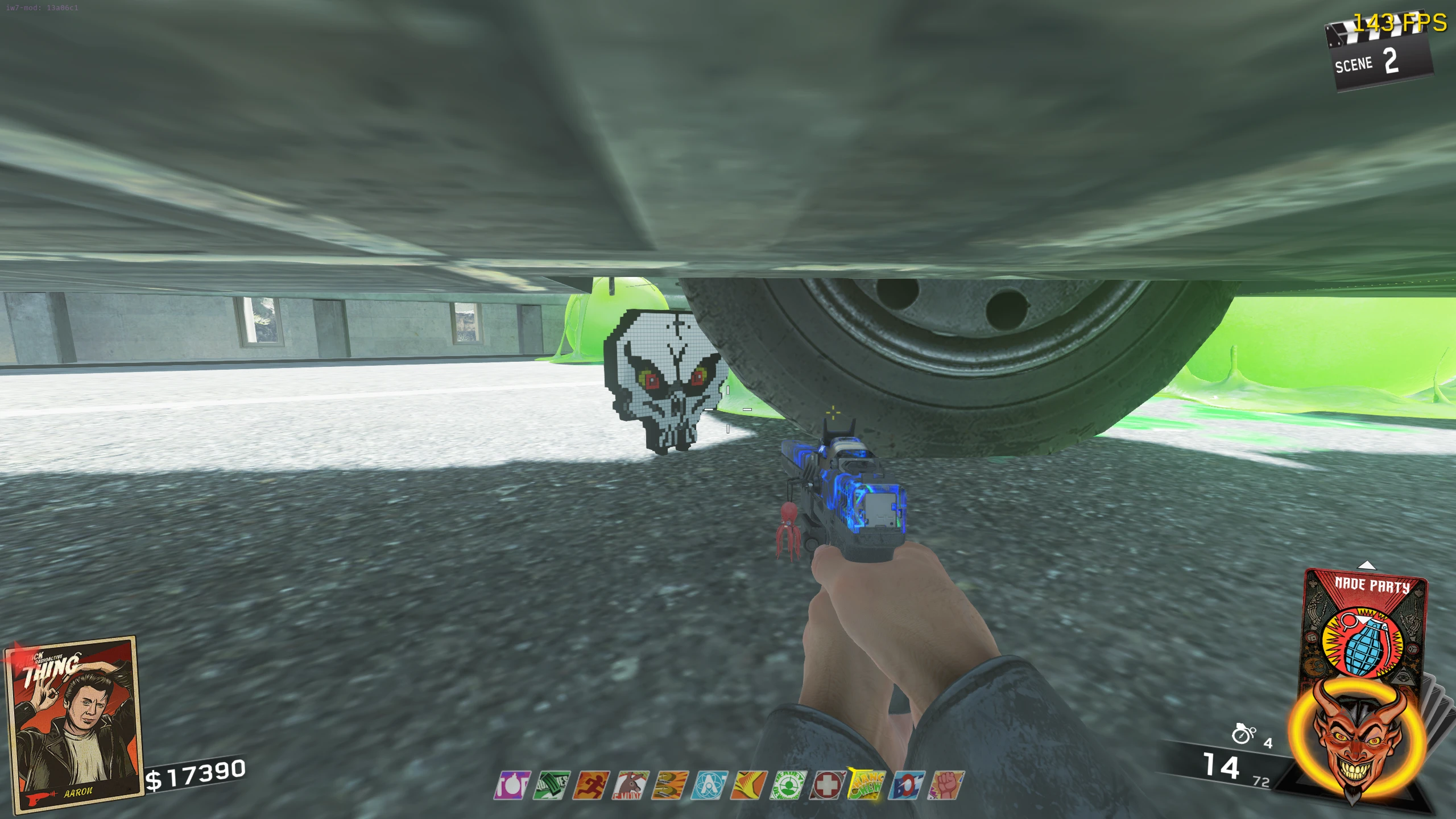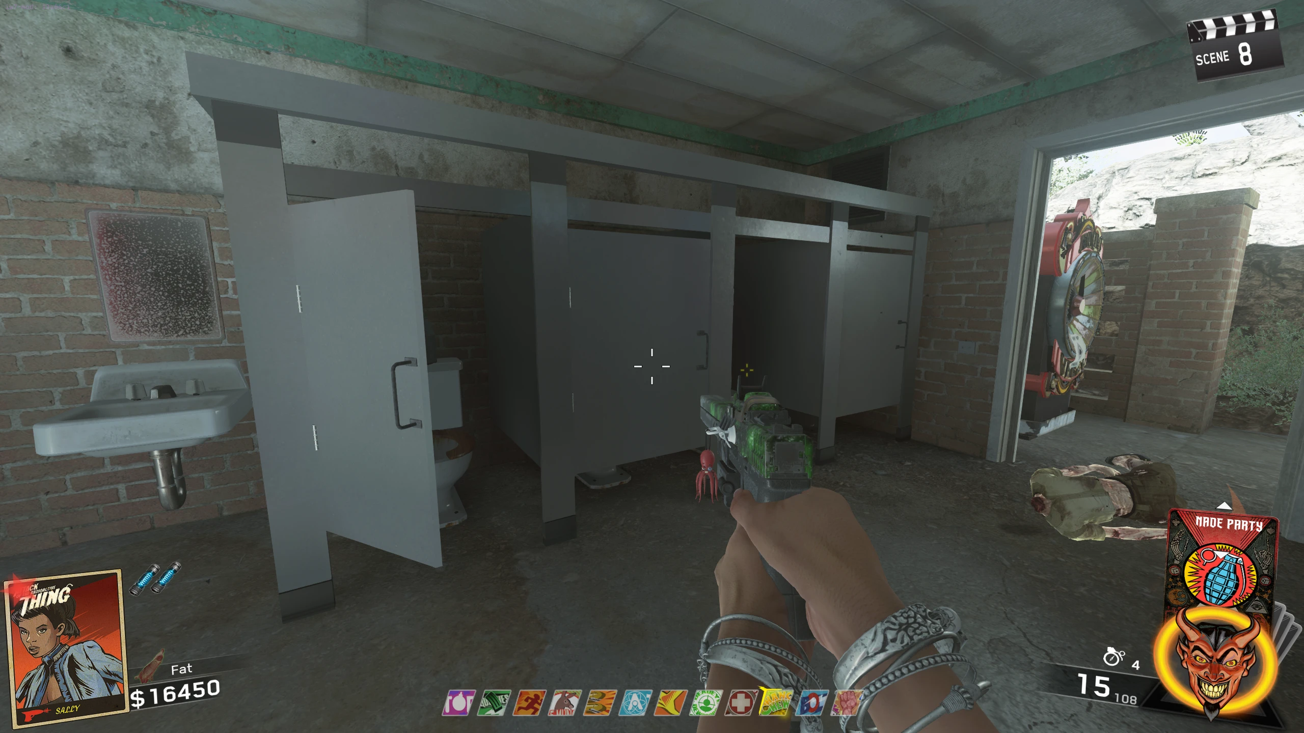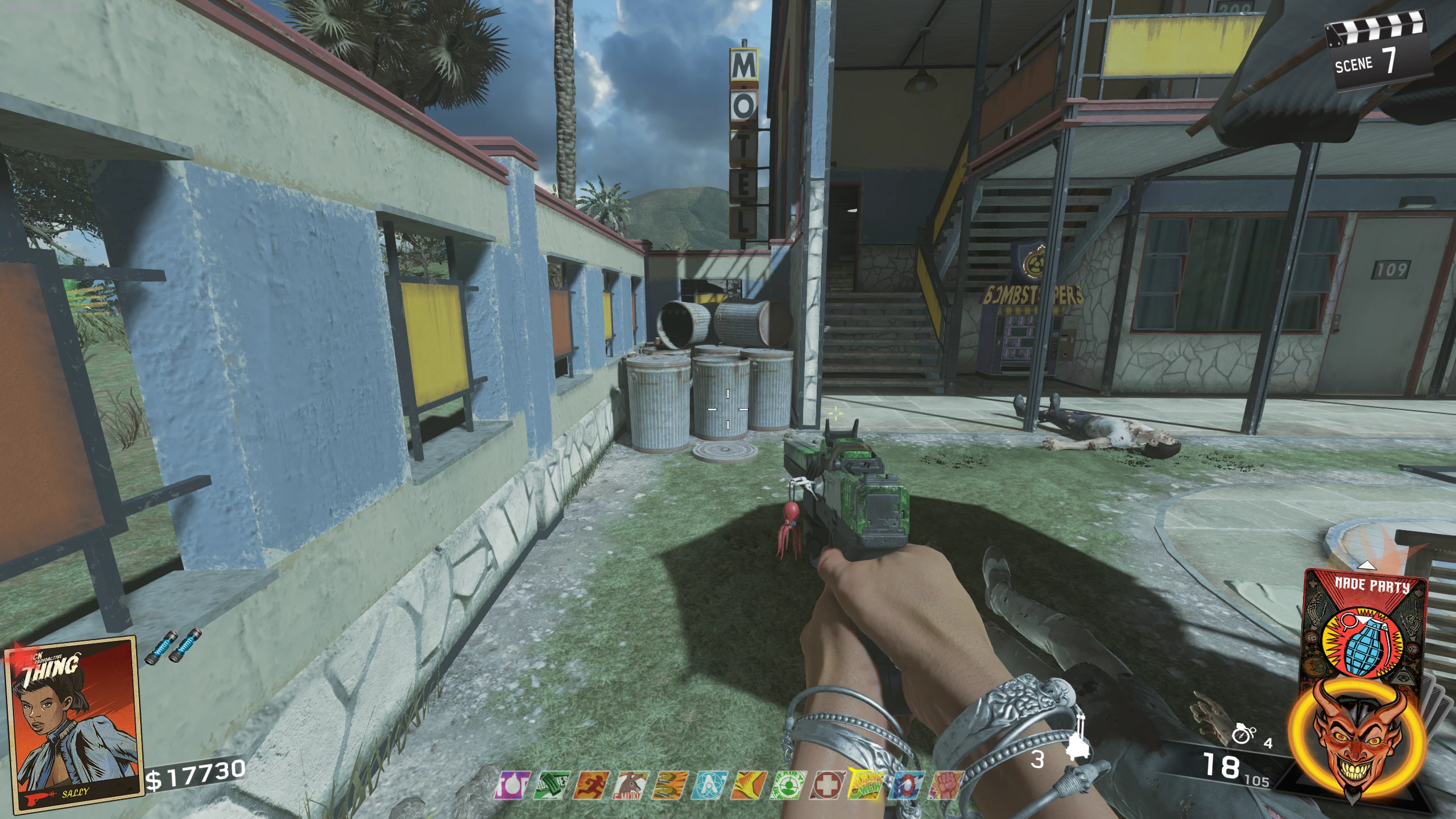 - You need to collect six body parts (Two arms, two legs, a torso, and a head) of a Zombie, which are scattered around the map. Each part can be collected at any time, in any order.